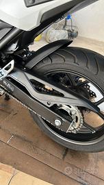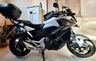 Ciao, vendo Honda NC750X DCT (Dual Clutch Transmission), immatricolata a novembre 2019 (allestimento MY2018), colore bianco. La moto ha una potenza di 55 CV (40,3 kW) ed è omologata Euro 4. Il veicolo è in condizioni eccellenti, sempre riposto in garage con telo protettivo (che includo in omaggio) e regolarmente tagliandato una volta all'anno presso la rete ufficiale Honda. Sono l'unico proprietario e le gomme Pirelli Angel (sostituite ottobre 23) sono all'80%. Si tratta di una configurazione estremamente ricca, paragonabile a una "Travel Edition", grazie ai numerosi accessori GIVI e originali: - Cupolino maggiorato e paramani - Barre paramotore e faretti di profondità - Bauletto e borsa da serbatoio - Paraschizzi anteriore/posteriore e supporto per navigatore/smartphone - Cavalletto centrale originale Honda - Borse anteriori porta attrezzi La moto è divertente e facile da guidare, con una posizione di guida naturale e rilassante ideale sia per percorsi urbani che extraurbani. Utilissimo il vano nel “finto serbatoio” . Il cambio a doppia frizione DCT permette l'utilizzo manuale o automatico con tre modalità (Drive, Sport1 e Sport2), garantendo consumi ridotti e la massima affidabilità del motore bicilindrico. Cambi marcia fulminei ne aumentano ancora di più il piacere di guida se si vuole andare forte, oppure si lascia fare tutto alla centralina per una guida rilassante e turistica. Insomma è una crossover affidabile e versatile, personalmente la apprezzo molto per i bassi consumi (che in questo periodo non guasta..).e per la facilità di guida. Revisioni OK. Passaggio di proprietà a carico dell'acquirente. Prezzo leggermente trattabile . Ahimè me ne separo per mutate esigenze personali. Resto a disposizione per ulteriori informazioni o foto per chi fosse realmente interessato. Vi prego di contattarmi preferibilmente nelle ore serali o durante il weekend.