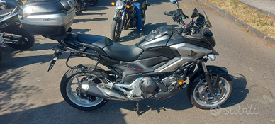 Honda nc con cambio automatico, accessoriata di paramotore originale honda cavalletto centrale ottimo per manutenzione catena ecc ecc ,faretti givi attivabili da pulsante originale su cruscotto, paravento alto givi più originale mai montato, kit valigie più borse interne e bauletto givi da 46 lt con chiave unica per le serrature ,presa usb-c blocca corona con tre chiavi della block system.