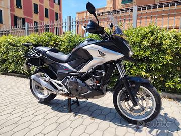 Vendo bellissima Honda NC750X Immatricolata il 06/02/20217 Km 56000 Modello con cambio manuale. Revisione valida fino al 06/2027 Due soli proprietari totali. La moto è conservata molto bene come si vede dalle foto e non necessita di nessun lavoro. Non sono presenti righe, graffi ed altri tipi di danni. È sempre stata fatta la manutenzione/tagliandi ed è sempre stata rimessata in box sotto al telo. Sostuiti catena e pignone 200 km fa. Tagliando olio e filtro appena effettuato. Moto pratica sia per uso cittadino che per lunghe percorrenze. Completa di: - presa USB per ricarica cellulare/navigatore -vano porta casco -due borse laterali rigide della Kappa -un bauletto posteriore della Givi -due luci supplementari -paramotore -due vani porta oggetti supplementari fatti fare su misura Possibilità di consegna con mio mezzo nell'arco di 200 km concordandone la tariffa. Documenti pronti per passaggio di proprietà. Disponibile per visione anche con meccanico di vostra fiducia. Primo contato tramite chat di Subito. Prezzo trattabile dopo visione. Vendo per passaggio ad altro modello.