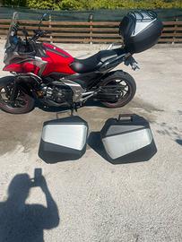 Vendo Honda NC750X DCT TRAVEL 2021 penultimo modello full optional con valigie originali Honda fari paracarena manopole riscaldate con tagliandi Honda uno l'ultimo appena eseguito kit catena nuovo gomme nuove circa 2000 km garanzia Honda doppie chiavi tutta perfetta come nuova vendo senza scarico Akrapovic e senza piccoli accessori da me istallati kit abbassamento più originale cavalletto centrale km 33000 prezzo 6000 euro non trattabile