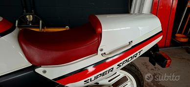 Vernice originale: Mai stata riverniciata. Le carene e il serbatoio presentano la livrea e gli adesivi originali dell'epoca, ancora brillanti e ben conservati. dato che è un conservato specifico per corretteza che su di un lato del sebatoio c'è una picolissima bolla sotto la vernice che probabilmente era uscita all'epoca e sempre rimasta cosi ma quasi invisibile