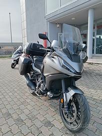 Vendo bellissima e super accessoriata Honda Nt 1100 DCT Travel Edition. Mezzo immatricolato nel 2022, con soli 19035km percorsi , unico proprietario ed in garanzia ufficiale Honda fino al 2028. Sempre accuratamente custodita e manutentata è pronta a portarti ovunque in pieno confort e sicurezza. Equipaggiata con manopole riscaldate, cavalletto centrale, barre para care con fari supplementari, sella e schienale confort, cruise control, tris valigie . Valutiamo permute di ns gradimento ed effettuiamo finanziamenti in sede. Maggiori info anche via whatsapp al