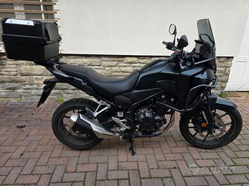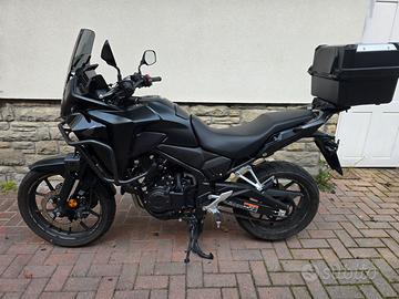 Vendo moto Honda NX 500 colorazione Matte Gunpowder Black Metallic per passaggio a cilindrata superiore. Moto immatricolata a maggio 2025, come nuova, accessoriata con: - Urban Pack comprendente portapacchi, bauletto 38L, borsa interna bauletto (in confezione ancora da aprire), cavalletto centrale. -Adventure Pack comprendente adesivi ruota, pad serbatoio, paramani, tubolari carena, parabrezza alto scuro, fari fendinebbia. - Presa 12 volt. tutte le componenti sono originali. effettuato primo tagliando 1000km presso officina autorizzata Honda. Garanzia ufficiale Honda fino al 05/2031.