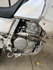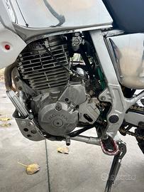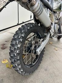 Moto preparata con forcelle anteriori derivanti da Yamaha WR 450 (appena revisionate) e mono Öhlins al posteriore.