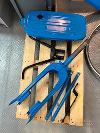 Vendo per mancanza di tempo nel terminarlo ciclomotore d'epoca Honda P 50 anno 1969 con regolare libretto a pagine originale quindi non necessita di passaggio.Veicolo da rimontare poiché come da foto é stato verniciato in maniera professionale da carrozzeria specializzata ,cerchi lucidati e raggi sostituiti ,motore smontato per scrupolo ma avendo fatto pochissimi km in passato basta una serie di guarnizioni nuove per il rimontaggio.Completo di tutte le sue parti che sono in buone condizioni come sella parafanghi e plastiche varie ecc.. Rimango a disposizione per eventuali domande.