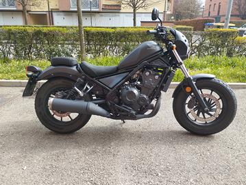 vendo bellissima Honda Rebel 500 colere nero opaco, con ABS, temuta maniacalmente bene, senza un graffio, custodita sempre in garage. Gomme e batteria nuove. accessori: borsa laterale in pelle PU da 20 lt, selle rifatte con imbottitura in gel e cuciture a rombi, cupolino