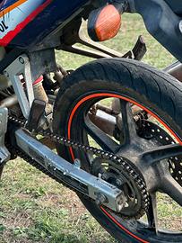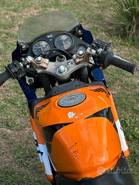 vendo per inutilizzo,la moto meccanicamente funziona,presenta ruggine come si può vedere in foto,da sistemare,sostituita la batteria e fatto cambio d'olio,impianto elettrico completante funzionare,mancante di frecce.