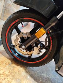 SULLA MOTO SONO STATI ESEGUITI TUTTI I LAVORI DI MANUTENZIONE ORDINARI PIU SOSTITUZIONE RULLI, CURSORI VARIATORE, VARIATORE MALOSSI, CAMPANA FRIZIONE, FRIZIONE, CINGHIA, GRUPPO CILINDRO PISTONE E CANDELA, OLIO MOTORE FILTRO ARIA, CALOTTE STERZO, PARAOLI PIU PARAPOLVERE AMMORTIZZATORI ANTERIORI, OLIO FORCELLE, AMMORTIZZATORI POSTERIORI, SUPPORTO MOTORE RINFORZATO, DISCO A MARGHERITA ANTERIORE CON PASTICCHE FRENO, RETTIFICA CERCHIO CON GANASCE POSTERIORI ORIGINALI, BAULETTO NUOVO ORIGINALE, PARABREZZA NUOVO, GOMME NUOVE.