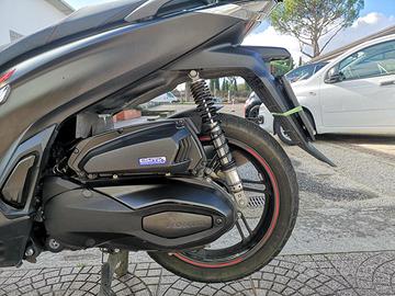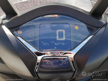 Con: Motore monocilindrico, cambio automatio, computer di bordo, Abs, faro a Led, raffreddamento a liquido, chiave Keyless, vano retro scudo, ampio vano sotto sella, doppio cavalletto, trasmissione finale a cinghia, presa a 12V, parabrezza Isotta, freni a disco da 256mm anteriore e posteriore, cerchia da 16".