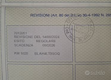 Gomme, batteria, cinghia di trasmissione e tutti i tubi/raccordi in gomma nuovi.