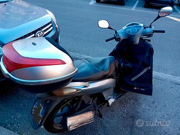 Scooter grigio, revisionato, gomme in ottimo stato, coprimoto tucano, bauletto. Piccoli difetti carrozzeria. Contachilometri guasto.
