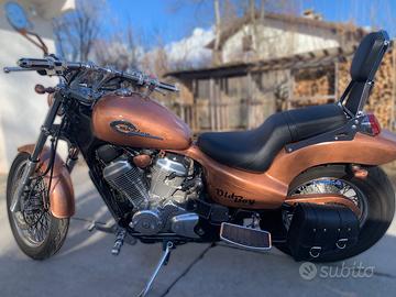 Vendo Honda Shadow 600 personalizzata in diverse parti con accessori De Pretto. Una moto che si fa notare nel suo colore rame anticato, veramente unica nel suo genere, di grande effetto visivo e da concorso. Accessoriata con schienale e pedane posteriori piatte regolabili per un migliore confort del passeggero. Sella perfettamente conservata e praticamente nuova. Fornisco altra sella originale del 95 , codone portatarga originale, portapacchi abbinato allo schienale. Revisione valida fino a giugno 2026, Gomme nuove. Appena sostituito olio motore e filtro. Carburatori revisionati, membrane nuove. Unica cosa da revisionare paraolio forcella anteriore. Fornisco kit revisione paraoli + olio.