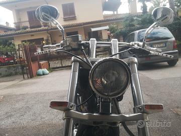 Honda shadow 600 custom, anno 1996, secondo proprietario, accessori marca DPM, MANUBRIO, FORCELLA, FANALE ANTERIORE, INDICATORI DI DIREZIONE, POGGIA PIEDI ANTERIORI E POSTERIORI, PEDANA FRENO E FRIZIONE, MANOPOLE FRENO E ACCELERATORE, MARMITTE. Usata solo estate casa -mare distanza 10 km. Ferma da 3 anni, tenuta sempre in garage. In aggiunta ci sono anche le borse laterali come da foto. Pneumatici al 70%,. Vendo perchè passato a scuter 400. Il prezzo escluso il passaggio è 5000 euro trattabili, ma non tantissimo. Disponibile per prova