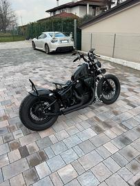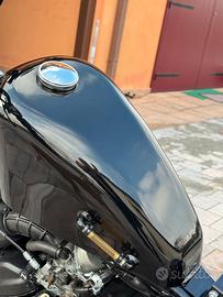Progetto basato su Bobber slim, svariati lavori di customizzazione eseguiti tra cui serbatoio custom con controllo benzina a cannuccia esterna stile harley anni 90, manubrio rialzato, sella a molle, pedane custum e tanto altro come potete vedere nelle foto