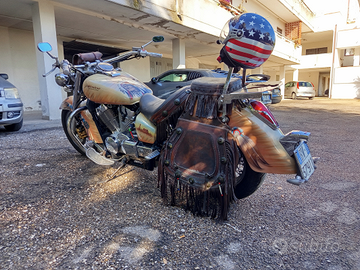 Moto in perfette condizioni giá tagliandata e batteria nuova senza graffi totalmente selegrafata in stile usa nativi americani indian anno 2005 Molto bella e ben tenuta...