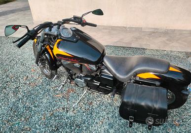 Vendo Honda Shadow 750 Black Widow, Moto in ottime condizioni , marmitte originali , manubrio Z-Bar , borsone laterale rinforzato , specchietti DPM (De Pretto ) e sella modificata. Batteria nuova e guaine sostituite. Vendo con vari accessori originali tipo sella , schienale , manubrio, pedane ecc... Consegno anche 2 manubri , uno originale e uno come si vede in foto.