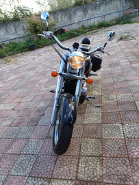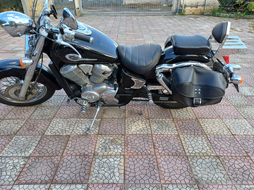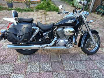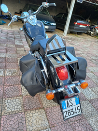 Honda shadow 750 hanno 2000. Moto ricoddizionata con tutti i pezzi originali, ritirati direttamente dalla Germania, Moto in rodaggio ho speso solo 6000 euro per rimetterla. Questa moto è un ricordo di famiglia. Gommata nuova con miscelin anti grip ,scarico nuovo, forcellone nuovo,spalliera è supporti borse nuove fatte da artigiano a mano. Il tutto documento è fotografato. Vedo solo per bisogno. Prezzo 4000 trattabile