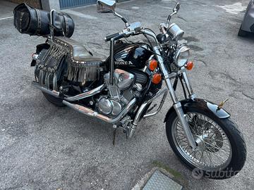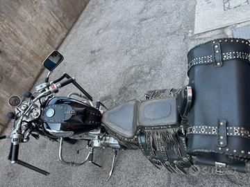 Moto accessoriata di borse in pelle fatte a mano. Cromature molto belle e tutte originali . Vendo per inutilizzo . Prezzo 3200 no scambi o offerte ridicole prezzo non trattabile