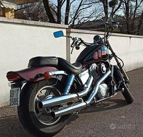 HONDA VT 1100 SHADOW AMERICA ANNO 1994 CC 1.100 KM 86.900, MOTO TENUTA BENISSIMO, TUTTA ORIGINALE. POCHISSIMI ESEMPLARI ANCORA DISPONIBILI. BORSE IN PELLE, SCHIENALINO, SERBATOIO AEROGRAFATO.