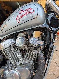 Vendesi Honda Shadow VT 600 Bobberizzata. carburata per filtro aperto a scarico aperto, monta forcelle inclinate DPM, Copri Radiatore DPM. Tutti i restanti pezzi sono fatti in casa, la moto necessita di una verniciata ai fianchetti e sul parafango. Per ulteriori foto e video ci sentiamo in privato. Trattabile.