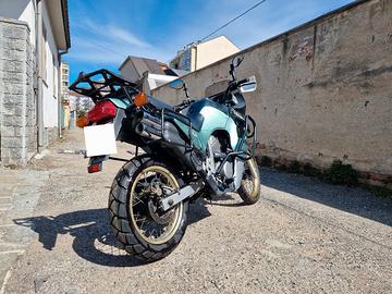 Privato vende bella Honda Transalp XL600V del 1991, Made in Japan (Prima serie), Iscritta ASI. Si richiedono €2,500 per una moto in forma, usata con attenzione e tenuta da appassionati. Tagliandata questo inverno con olio Bardahl e filtro Champion, sostituite le candele (tutte e quattro 😉) con le NGK da specifiche tecniche. REVISIONATA a MAGGIO 2025, ESENTE BOLLO in quanto veicolo ultratrentennale. Accessoriata con: Barre paracolpi alte, specchietti Unbreakable ripiegabili da enduro (ho anche i suoi originali), Tris di Valigie Givi Monokey dell'epoca in perfette condizioni e molto spaziose, complete di borse interne estraibili in tela impermeabile. Gommata con Metzeler Tourance che han fatto scarsi 2000km e possono tranquillamente fare ancora una o due stagioni in totale sicurezza. Gira come un orologio, parte meglio lei con il suo carburatore di altre mie moto ad iniezione. La vendo per sfoltimento collezione e per liberare spazio, senza alcuna urgenza. Ben felice di farla vedere a persone interessate, anche accompagnate da consulenti di fiducia, ASTENERSI COMMERCIANTI e COLLEZIONISTI DI FOTO/VIDEO o altri PERDITEMPO. Grazie mille 😁
