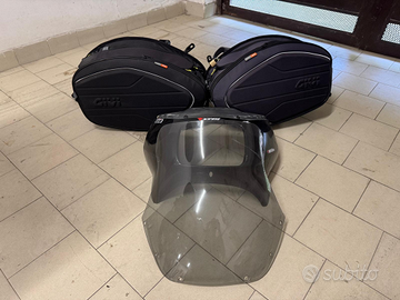 In ottime condizioni, perfettamente marciante, i km sono originali, disponibile per qualsiasi prova, corredata da bauletto per due caschi, borse laterali GIVI con staffe di montaggio, parabrezza alto e basso. Sostituzioni recenti: