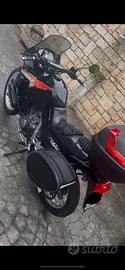 Completa di bauletto 48 litri con schienalino, e set bauletti laterali da morbide. Parabrezza alto, cavalletto centrale, paramotore e faretti supplementari.