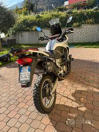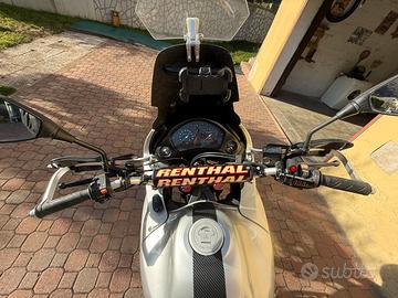 Cupolino alto Goffi, manubrio Renthal, paramani con anima in alluminio salva leve, faretti fendinebbia, assetto rialzato con apposito kit di un noto artigiano del settore, molle forcella Wirth progressive con olio Ipone sae20, il mono posteriore era stato cambiato 4 anni fa con uno sempre originale ma nuovo, telaietto posteriore portavaligie con attacco Monokey (le valigie le tengo per l'altra moto) nell'ultimo anno ho cambiato (per sicurezza) in quanto ancora originali cuscinetti sia anteriori che posteriori dei cerchioni e i cuscinetti di sterzo. I cambi olio li ho sempre fatti io ogni 5/6 mila km, credo di fargli comunque l'ultimo tagliando io prima di venderla (olio-filtro olio-candele e pastiglie freni nuove) il filtro se non ricordo male è un bmc o comunque un KN lavabile lavato e olioato quest'estate con appositi prodotti.