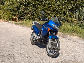 Vendo Honda Transalp XL 650 V anno 2002 al momento dell’annuncio con 63.000 km (attualmente la utilizzo fino a quando la vendo.) -Moto già revisionata da pochissimo il 05/02/2026; -Batteria sostituita da pochissimo il 07/03/2026; -Gommata con continental tkc 70 gomme pari al nuovo al 90% (e fatte mettere anche nuove camere d’aria); -Installato il filtro lavabile performante della k&n (al momento del tagliando va solo fatto lavare il filtro e lo si riutilizza, do assieme l’apposito kit per la pulizia); -Rimossa valvola pair ed istallato l'apposito kit; -Istallati i collettori di scarico diretti; -istallata presa a 12 V con doppio usb utile per caricare il telefono in viaggio (sotto chiave); -Installate manopole riscaldate (per viaggiare caldi in inverno) con regolazione di varie potenze di temperatura tramite apposito tastierino sul manubrio (alimentaz. sotto chiave); -forcelle anteriori originali ma con all'interno installate le molle della Hyperpro (migliora parecchio la guidabilità); -montato l’intero trittico nuovo con il super pignone della Kk-bike, catena della did serie oro ed ovviamente anche corona nuova; -sella rifatta nuova; -Dotata di doppie chiavi di accensione; -Tubi in treccia aeronautica; Per qualsiasi informazione non esitate a contattarmi sono a disposizione. GIUSTO PER INFORMAZIONE SOLO DI ACCESSORI INSTALLATI (molle hyperpro, manopole, trittico, collettori diretti, gomme nuove, batteria, tubi in treccia e sella rifatta e revisione apposto per 2 anni) CI SONO PIU DI 1000€