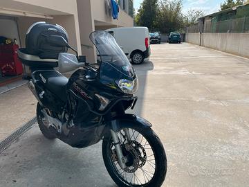 Vendo honda transalp 650 immatricolata giugno 2006 completa di scarico mivv più originale cavalletto centrale bauletto givi con portapacchi para motore heed cupolino alto givi kit catena corona e pignone cambiata da 7000 km la moto ha 53000 la revisione scade a giugno 2026 bollo pagato fino a gennaio 2027 tagliando eseguito da 4000 km insieme alla moto do anche pastiglie nuove perni pinze e collettori di scarico per eliminare il padellozzo mai montati