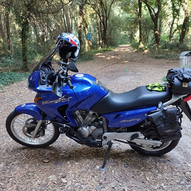 Moto in ottime condizioni km 60000 si può provare.A 55000 cambiate gomme , pastiglie anteriori, batteria, Kit trasmissione,candele revisionata febbraio 2025 .Completa di bauletto e valige laterali.