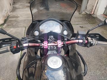 accessoriata con cavalletto centrale, barre paracolpi integrali, manubrio rialzato in alluminio.