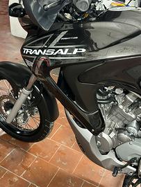 Honda transalp 700 Nera ( XL700V) accessoriata con bauletto, cavalletto centrale, antifurto elettronico con telecomando, doppio cupolino (quello in foto piu altro modello piccolo) tutti accessori originali Honda. Gomme Pirelli Scorpion Trail, sella confort con memory (by Teknoselle) fari lampadine led, kit catena-corona-pignone DiD nuovi, revisione effettuata e bollo pagato in piu fornisco pasticche freni ant. e post. originali ancora in confezione sigillata. Tenuta in maniera maniacale , perfetta in tutto. Qualsiasi prova!!