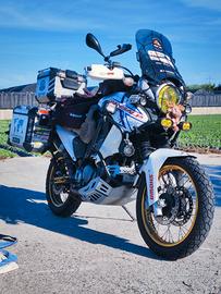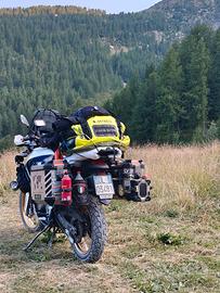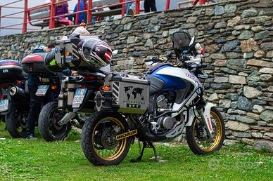 E giunto il momento di separarsi del mio fedele compagno transalpino di avventure, lo avuto con me da quando aveva la tenera età di 18.000 km Circa, tenuto sempre in garage ma utilizzato per fare un po' di tutto, niente di esagerato come mulattiere ecc, siamo stati anche a Capo Nord, se volete comunque vedere più foto e info, su Instagram trovate la pagina di Kiwy_adv_expedition_wild dove troverete foto e qualche viaggio fatto... Tenuto sempre bene con tagliandi fatti anche quando non ne aveva bisogno per pallino mio personale, cambiato il pignone con un dente in più della marca superpignon per evitare di danneggiare l'albero, dato che caricavo la moto per le tendate, così come tutti i cuscinetti cambiati, sia di sterzo con quelli conici per avere più resistenza, che quelli delle ruote anteriore e posteriore, alzato l'assetto di circa 5 centimetri con forchetta al mono ammortizzatore e steli anteriori (Mono sostituito non ha più l'originale) con uno sempre originale Transalp, parafango anteriore goffi workshop, paramani con anima di ferro per fuoristrada, aggiornato gli steli con molle progressive HyperPro, ovviamente cavalletto centrale aggiunto, sostituito parabrezza con quello sempre originale ma opzionale per più protezione, scarico completo collettori più silenziatore LeoVince, sostituzione sella con la seduta del passeggero e guidatore in Gel, 8 faretti aggiuntivi per l'utilizzo notturo principalmente fuoristradistico, paramotore in alluminio e paracarene con parafaro integrato (una chicca ordinata all'estero mai vista qua), telaietto per valigie in alluminio GIVI e portaoggetti sul telaietto sempre GIVI, tris di valigie GIVI trekker Outback in alluminio, tutte con rivestimento interno e rete elastica sul coperchio, le laterali hanno gli stip messi sopra il coperchio per appoggiare le valige e non rigare, in più tanichetta sempre GIVI da 2,5 litri e borraccia GIVI nell'altra, fanali a LED e batteria al litio ecc ecc... Per qualsiasi info contattatemi.