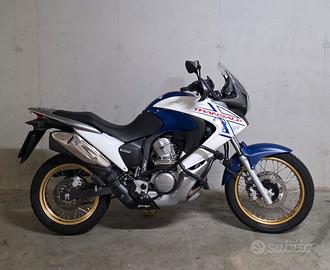 Honda Transalp XL 700 V (no ABS) immatricolata 02/2009, Euro 3, km percorsi quasi 26000, colorazione originale HRC, ultimo tagliando effettuato lo scorso autunno a 23500 km con sostituzione pastiglie ant+post, sostituzione olio freni, pulizia e sostituzione liquido radiatore, pneumatici Metzeller Tourance Next con camere d'aria Michelin, candele Iridium, olio + filtro, filtro aria lavabile BMC. Sulla moto sono montate barre paramotore Givi con installati faretti di profondità omologati Interphone, collettori decat Mivv. Moto perfetta, non presenta alcun difetto! Bollo pagato fino a Febbraio 2027, revisione Ministeriale valida fino ad Aprile 2028.