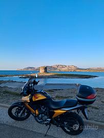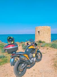 vendo a malincuore per problemi alla schiena recentissimi.Honda Transalp 700 con 50.000km appena tagliandata completamente con olio motul 7100 10w50 sintetico filtro olio,candele ,liquido refrigerante nuovo,batteria,camera d'aria anteriore e posteriore assieme ai pneumatici nuovi manopole,e guaina antiscivolo preleva frizione e freno,staffa di rinforzo manubrio, faretti di profondità, è dotata di valige laterali nuovissime della givi. venite con il meccanico di fiducia per qualsiasi prova. 4.000 euro la moto non necessita di nulla pronta da mettere in moto e macinare km sono stati spesi tra tagliando pneumatici e optional 600€