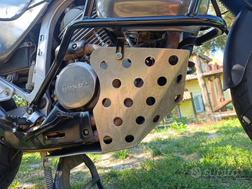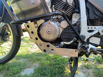 Transalp 1999, doppio freno a disco anteriore, paramani in metallo, molle forcella Hyper pro, leva cambio in alluminio con molla, carena faro quadro cambiata per estetica, griglia metallica protezione faro, cupolino VTR Fabio Goffi, Paramotore Falsiroli, paracarene sw motech, gomme ottimo stato, revisionata e appena tagliandata ( tagliando ogni 5000 km con motul 5100, predisposizione faretti aggiuntivi già installata con comando al manubrio.