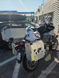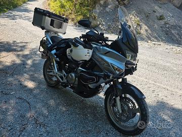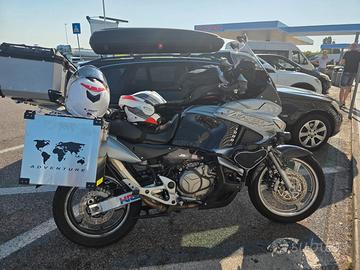 vendo la mia seconda moto usata x un viaggio in slovenia l'estate scorsa,moto in ottime condizioni estetiche e in condizioni meccaniche PERFETTE prima di partire,per una questione di mia sicurezza è stato fatto: cambio olio filtro olio liquido refrigerante filtro aria bmc candele ngk iridio catena corona e pignone did pastiglie ant e post brembo gomme (con 2800 km) dunlop meridian,gira come un orologio svizzero