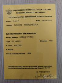 HONDA VF 500 F2 del 1984 iscritta al FMI federazione motociclistica italiana. Documenti in regola, esente bollo e assicurazione agevolata. La moto è stata completamente smontata, per fare un restauro completo, ma per motivi personali, ho dovuto abbandonare il progetto. il motore funziona. Per qualsiasi informazione, contattatemi. MAURIZIO. Genova