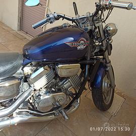 Honda VF 750 custom, bicilindrica 90 CV, in esenzione totale essendo trentennale, iscrizione ASI con registrazione libretto, perfetta in tutto, tagliandata e gommata, bisacce cuoio, assicurazione euro 120, vendo euro 5000