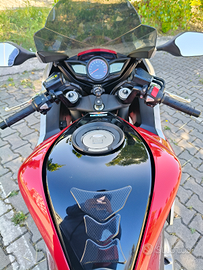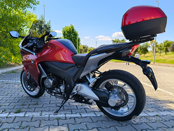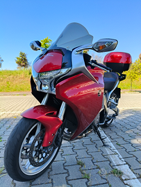 Vendo per cambio tipologia splendida Honda VFR 1200 F anno 2010, Km. 83898, regolarmente tagliandata. Vendo con kit di valigie e bauletto originali in tinta e valigie interne laterali. Dotata di cavalletto centrale, parafango posteriore opzionale Honda, forcelle anteriori revisionate da poco con molle Hyperpro progressive, doppie chiavi, lampade anteriori a led, cupolino bombato fumé (disponibile anche l'originale), presa USB, flangia serbatoio Givi per borsa serbatoio Tanclock. Moto in ottimo stato, tenuta in modo maniacale e senza un graffio. Non interessato a permute. Prezzo poco trattabile.