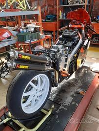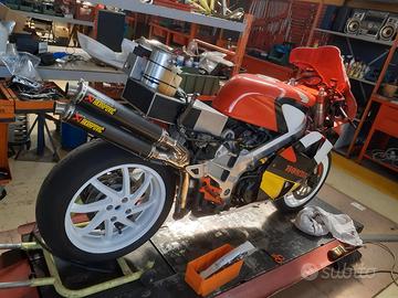 Motociclo radiato per uso su area privata nell' anno 2002 non può circolare su strada. Prototipo costruito su base Honda Vfr 750 RC36. Modificato meccanicamente e ciclisticamente in ogni sua parte. Ideale per esposizione anche se esteticamente da rivedere oppure come passatempo per veri amatori e intenditori. Per eventuale utilizzo su circuito da rivedere dischi e tubi freno anteriori e altri particolari. Sospensioni e cerchio anteriore derivati Suzuki e modificati drasticamente. Collettore scarico Yoschimura, silenziatori artigianali, finto serbatoio carburante funge da airbox, profili alberi camme modificati, condotti lucidati, particolari di montaggio autocostruiti. Praticamente di originale è rimasto ben poco. Questa moto è frutto di anni di lavoro ed è un esemplare unico. Vendo o permuto con auto Honda Hr-v / Cr-v.