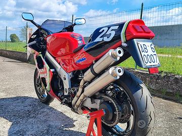 Honda vfr750f rc36II anno 1996, replica RC45 - 6 ore di Suzuka Esemplare unico, avantreno Aprilia RSV1000 OLD, mono posteriore Wilbers in ergal ricavato dal pieno, dischi da 320mm, pinze freno Brembo Triple Bridge, Pompe freno e frizione Brembo, Tubazioni freno e frizione in treccia, Pedane in ergal regolabili, Kit trasmissione nuovo, Gomme Pirelli Rosso II nuove, Scarico completo 2in2 omologato, Carene miste in vetroresina e CARBONIO, Serbatoio in vetroresina (con prese aria dinamiche vere) ricavato dallo stampo del serbatoio originale RC45 RVF 750, Fari e frecce full Led Omologate, Radiatore olio ex Aprilia RSV4, Telaietti anteriore e posteriore realizzati su disegno e tantissimi particolari realizzati su misura solo ed esclusivamente per questa moto. Visibile a Villafranca di Verona solo se referenziati. Revisione in corso di validità con scadenza Giugno 2027 Bollo 2025 pagato e, dal prossimo anno, diventa storica al 100% quindi con assicurazione agevolata e bollo di 11,22 EURO. NO PERDITEMPO o collezionisti di fotografie. Si garantisce massima serietà e se ne richiede altrettanta. PREZZO TRATTABILE SOLO DOPO VISIONE
