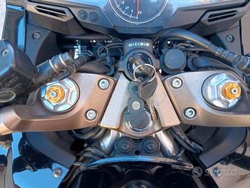 Spessori per rialzare i semi manubri di 3cm (non sono montati in questo momento si vedono in foto valore 300 euro ) , sono comodi per chi è alto oppure vuole fare viaggi, in questo momento non ci sono montate le maniglie passeggero e c'è su l'unghia monoposto, chiaramente ho anche la sella passeggero e scarico originale.