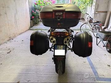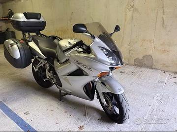 Honda vfr 800 vtec, 08/2002, 86.000 km, appena tagliandata con olio MOTUL 5100 10w50 + filtro olio, precedente proprietario possesso dal 2011, manutenzione tutta Tottene, distribuzione + controllo valvole già fatte a 49.000 km spesi circa 800,00, in 05/2022 filtro aria + pastiglie freno ant e post + gomme ant e post + batteria da allora fatti circa 4.000 km, revisione fatta 07.2025 prossima scadenza 07.2027, kit trasmissione ok, set 3 valige, doppie chiavi, ottima moto comoda ma sportiva, sport touring, nessun rumore strano o anomalia, affidabilità honda, vendo per impossibilità sopravvenuta di usarla nuovi programmi estivi, possibilità consegna previo accordo.