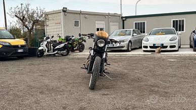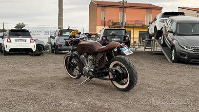 * Trasformazione cafe racer: sella monoposto artigianale, manubrio ribassato, frecce e specchietti minimal, parafanghi modificati