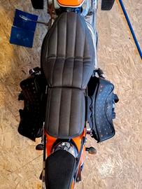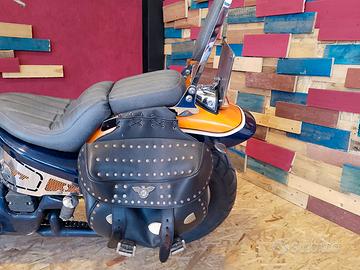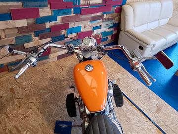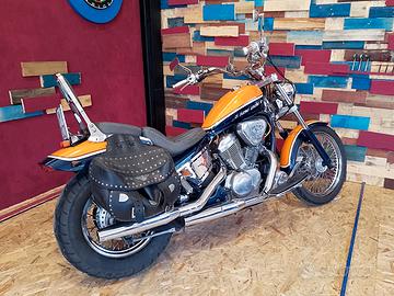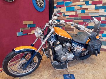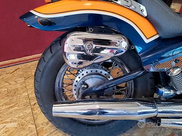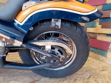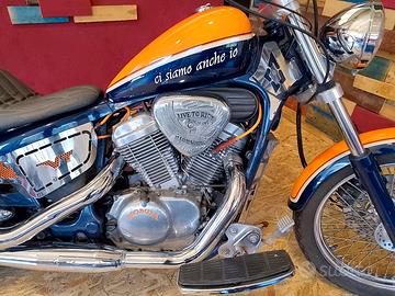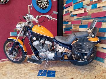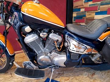 HondaVt 600 Shadow immatricolata 1989 con circa 58000 chilometriall'attivo, solo 2 proprietari di cui l'ultimo e attuale dal 1995!!Tagliandata, revisionata e gommata, nessun lavoro da fare!!Colrazione orange/blue bellissima, borse laterali cuoio, sissy bar,manubrio, pedane, casse audio, molti particolare Vt in allumini eccecc...