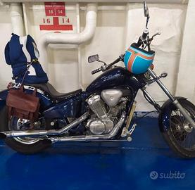 Manubrio allargato artigianalmente e forcelle allungate per una guida comoda nei lunghi viaggi (in tranquillità) e un po' meno nei passi di montagna.