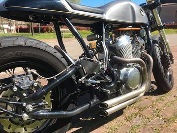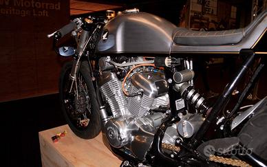 Honda VT 600 Shadow Cafè Racer. Modello originario del 1995 elaborato nel 2018 quasi esclusivamente con pezzi di ricambio derivati da altri modelli Honda (tranne fanale anteriore e serbatoio). Motore originale completamente revisionato e che ha percorso da allora meno di 2000 Km. Elaborazione di alta qualità artigianale con numerosi parti realizzate a mano. Monosella, solo guidatore. Elaborazione solo estetica, tutte le specifiche del libretto non sono sono state modificate. Pezzo Unico come da foto.