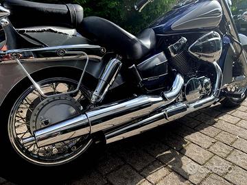 Tagliando fatto da poco - sostituzione batteria e gomme, dotata di borse laterali, schienale passeggero, parabrezza anteriore, manubrio basso, nessun difetto. In ottime condizioni con tagliandi e manutenzioni regolari. Borse laterali in pelle più borse rigide sempre in pelle. Schienale passeggero. Secondo manubrio basso con parabrezza. Seconda Coppia ammortizzatori posteriori 3 cm piu alti. Gomme nuove batteria nuova tagliando appena fatto. Km 49500. Revisione valida. Nessun difetto